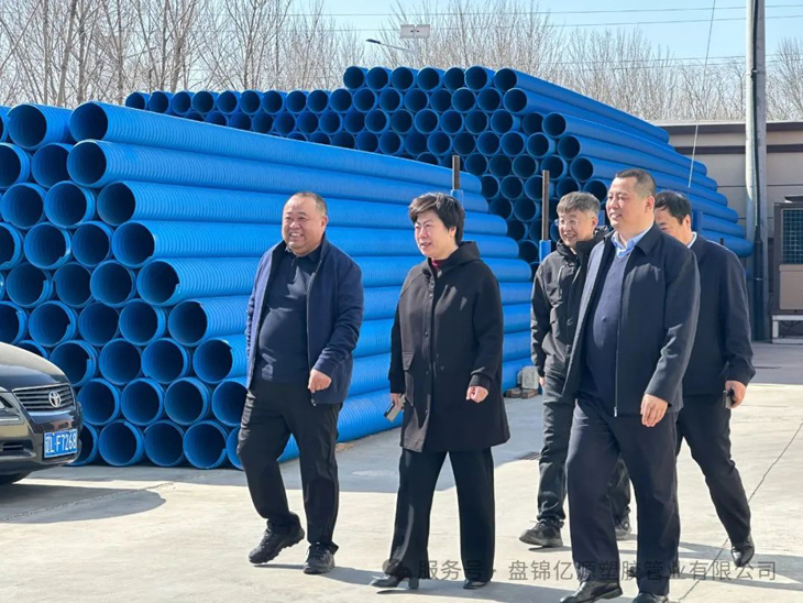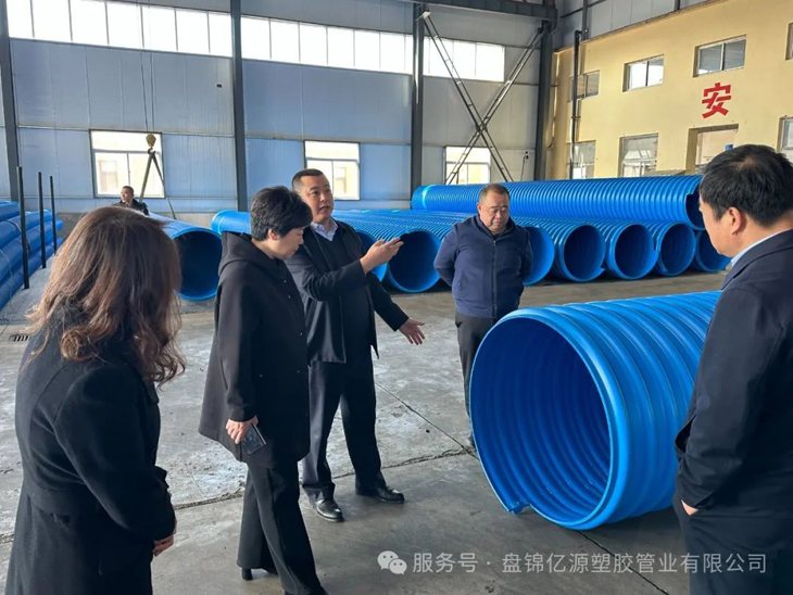 2025年3月19日,區人大主任王茜、副主任顧明思一行來到盤錦億源塑膠管業有限公司,開展人大代表企業走訪調研活動,深入了解企業經營現狀、發展需求及未來規劃,為企業發展提供支持與指導。 此次調研旨在貫徹落實區委、區政府關于優化營商環境、支持企業高質量發展的決策部署,通過實地走訪,了解企業在生產經營中遇到的困難,為企業排憂解難。