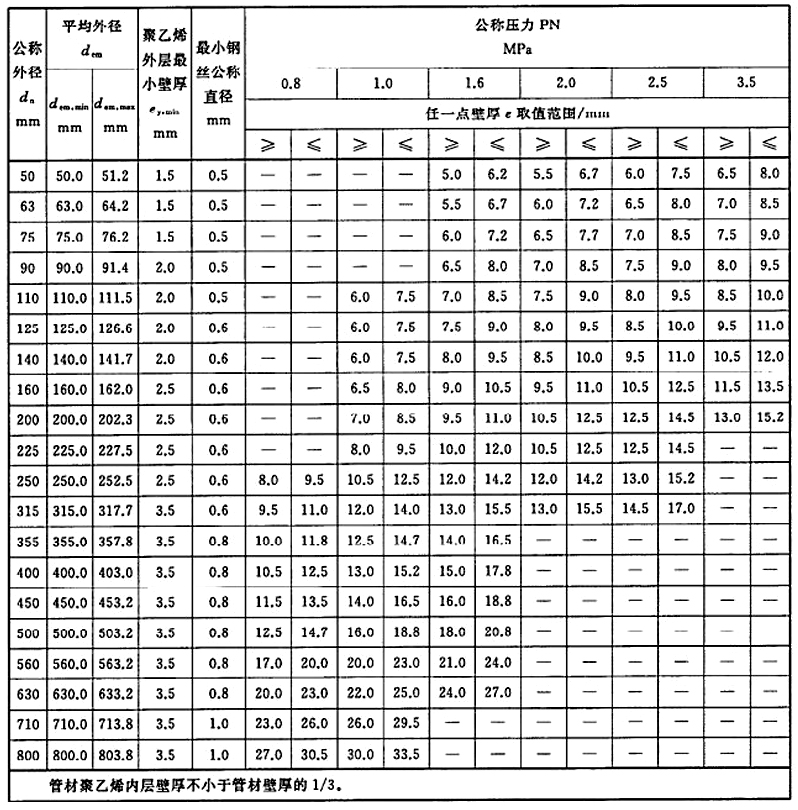 8.可通過調(diào)整鋼絲直徑,塑料層的厚度等,制造不同壓力等級(jí)的管材;